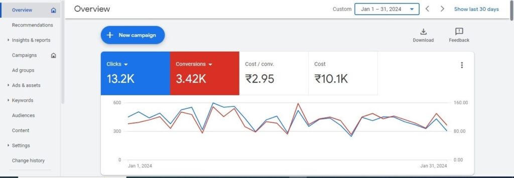 - Cost per Conversion: Decreased significantly from ₹8.79 in July to ₹2.95 in January, improving cost efficiency.